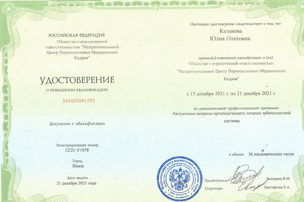 • Составление и реализация индивидуальных комплексных планов лечения по специальности «стоматология ортопедическая»