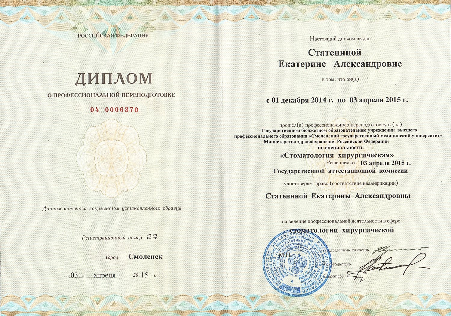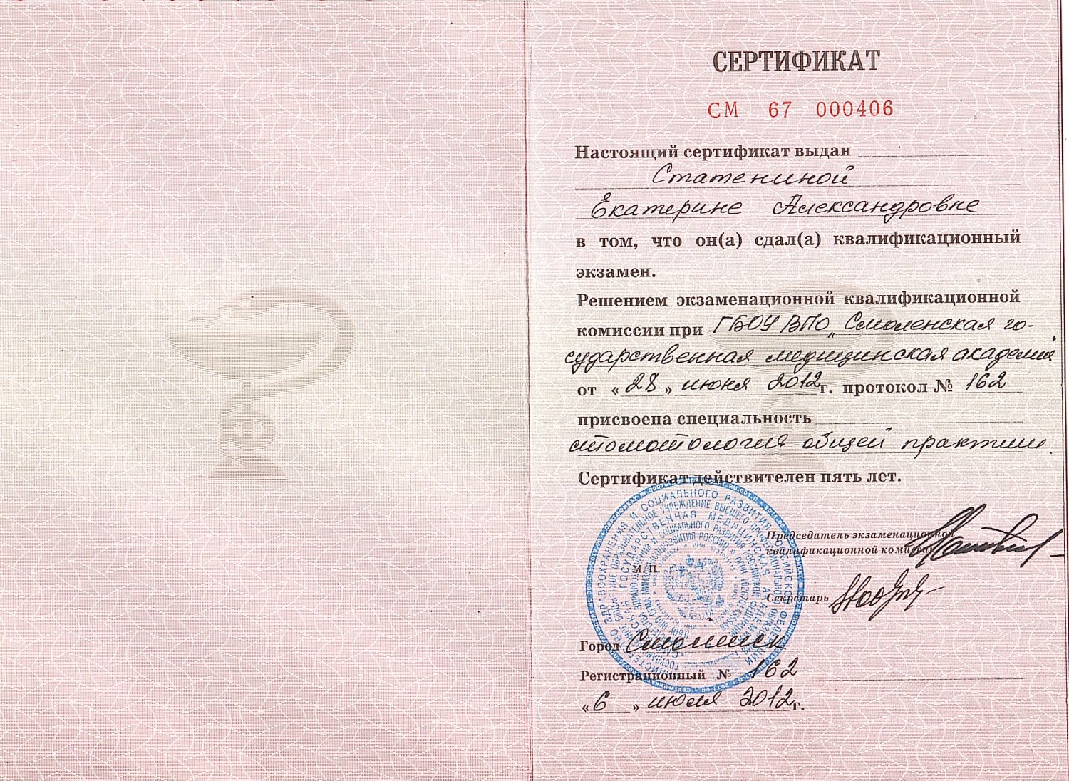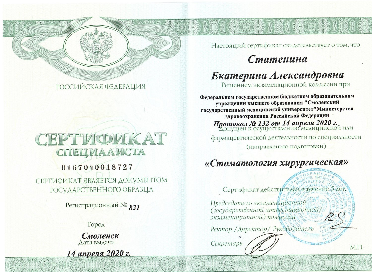 • Ознакомлена с методами лечения челюстно-лицевой патологии.