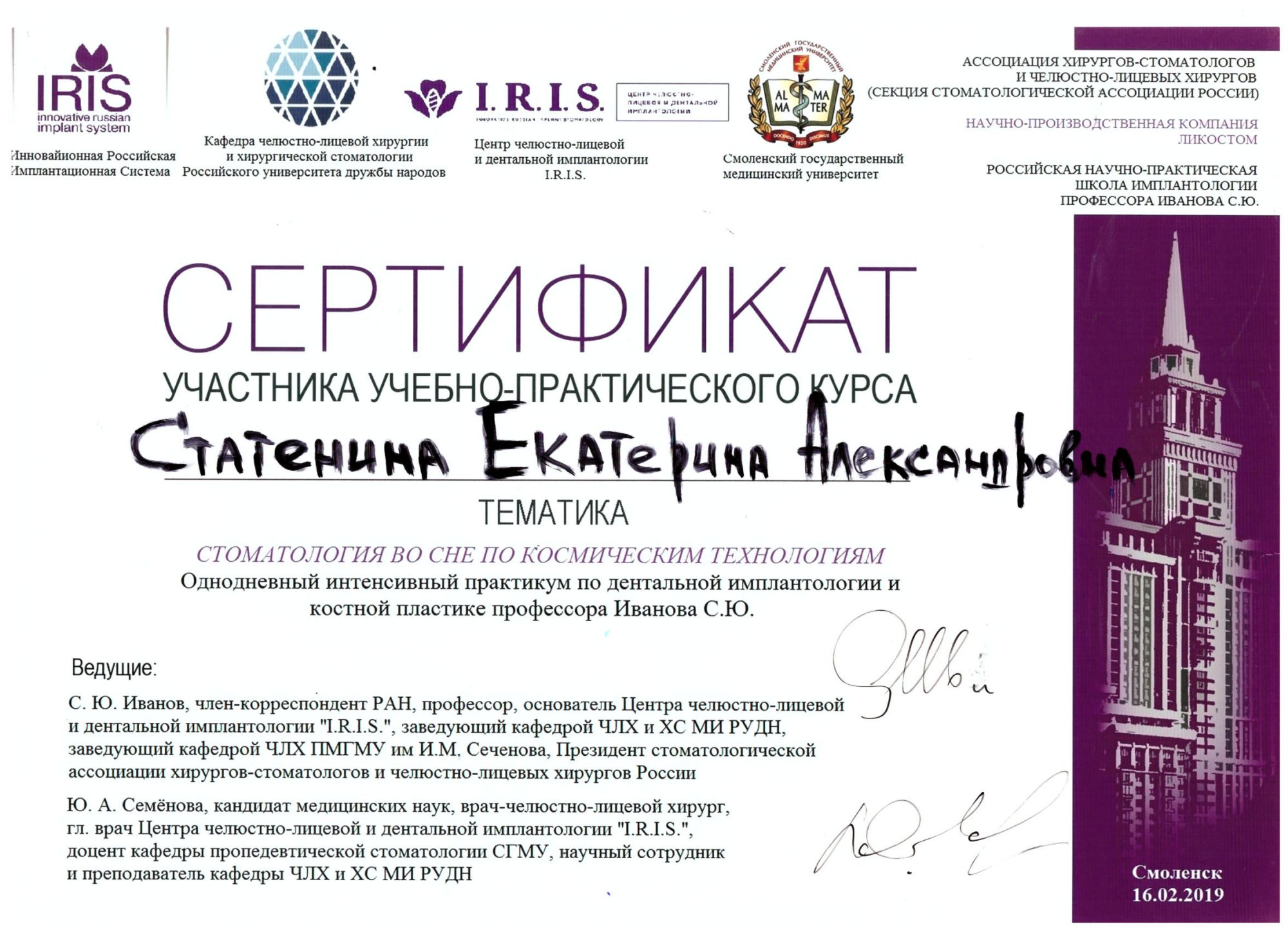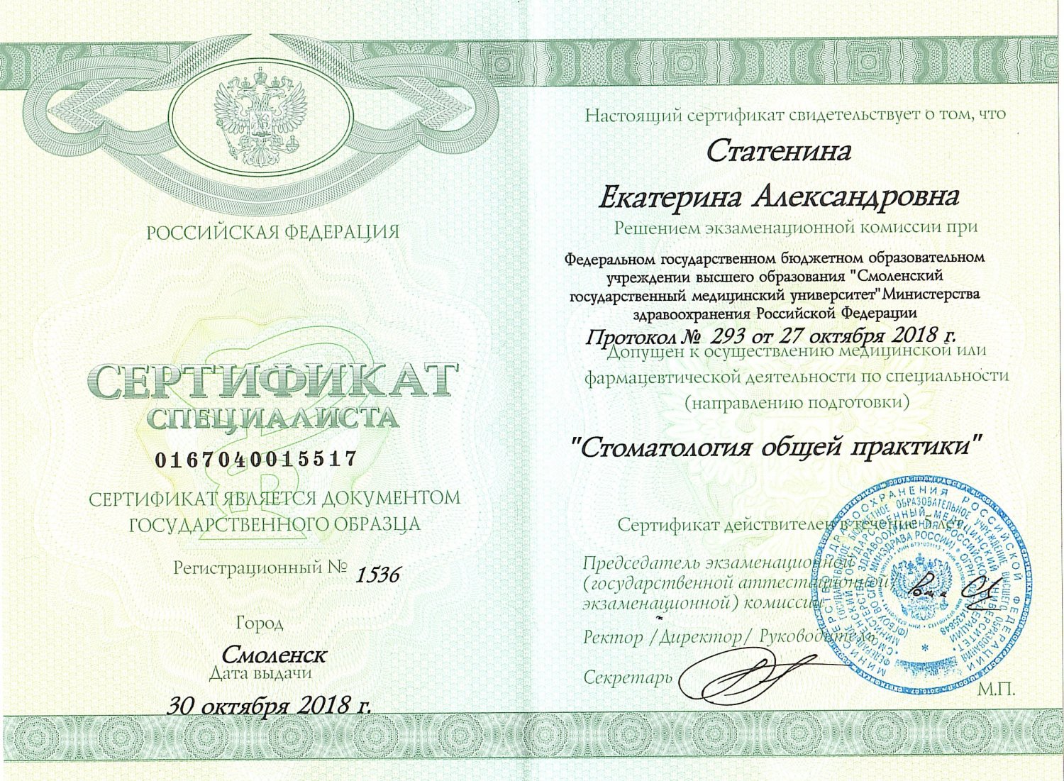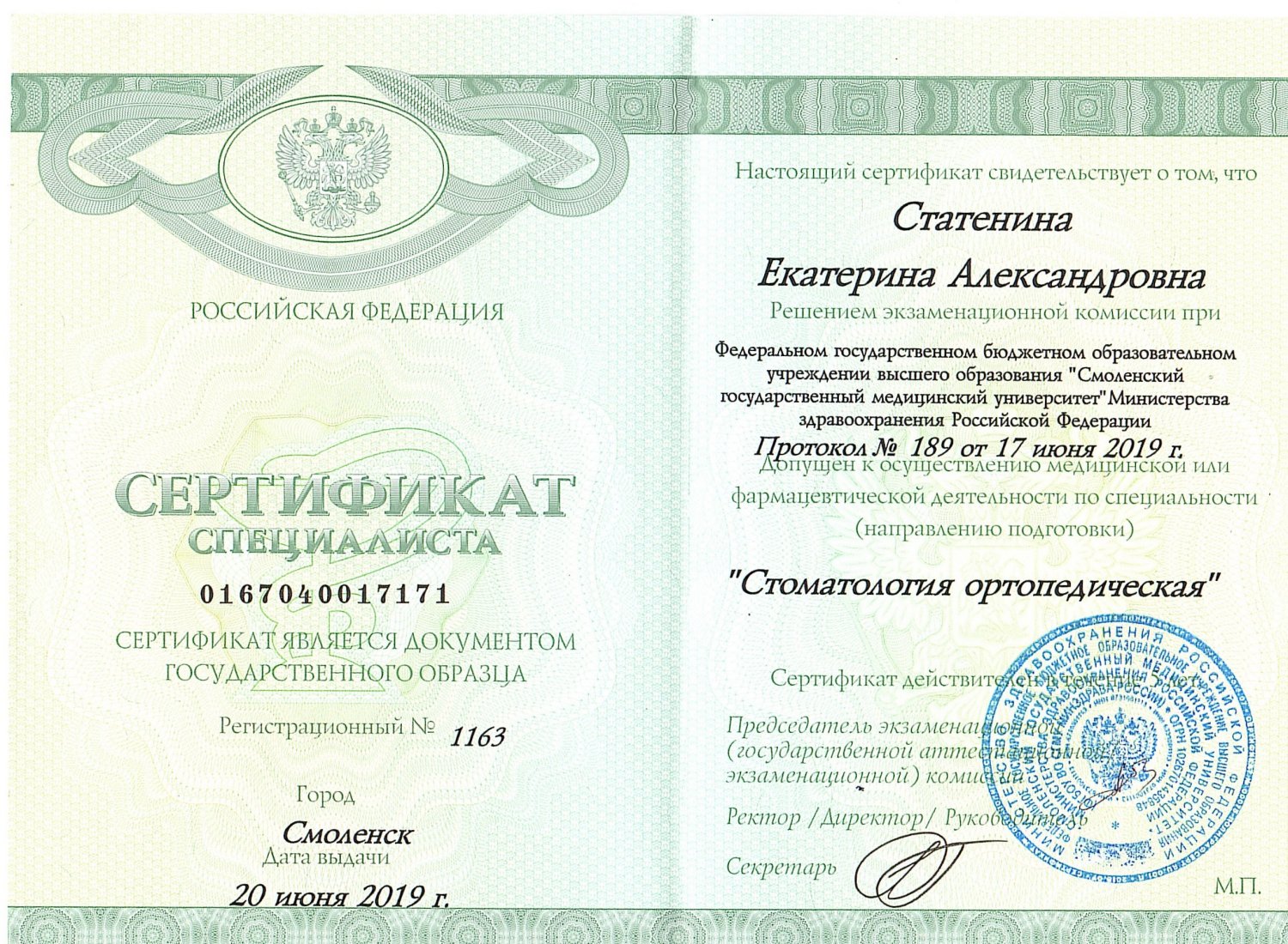 • Ознакомлена с методами лечения челюстно-лицевой патологии.