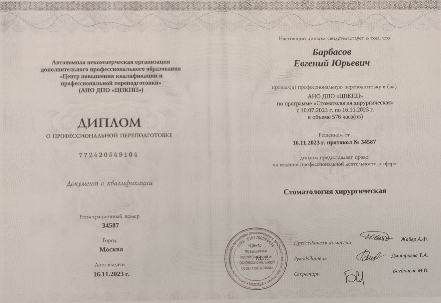 Профессиональная переподготовка 576 часов по направлению Стоматология хирургическая от 16.011.2023 № 7724/20549104