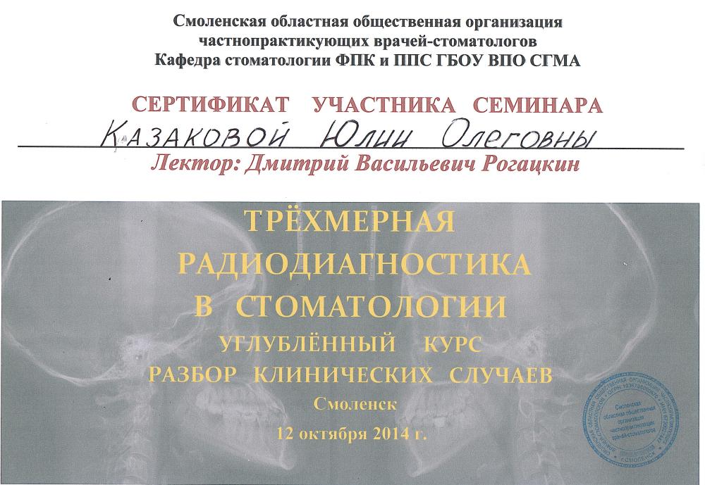 • Опыт работы с программным обеспечением КТ и радиовизиографом