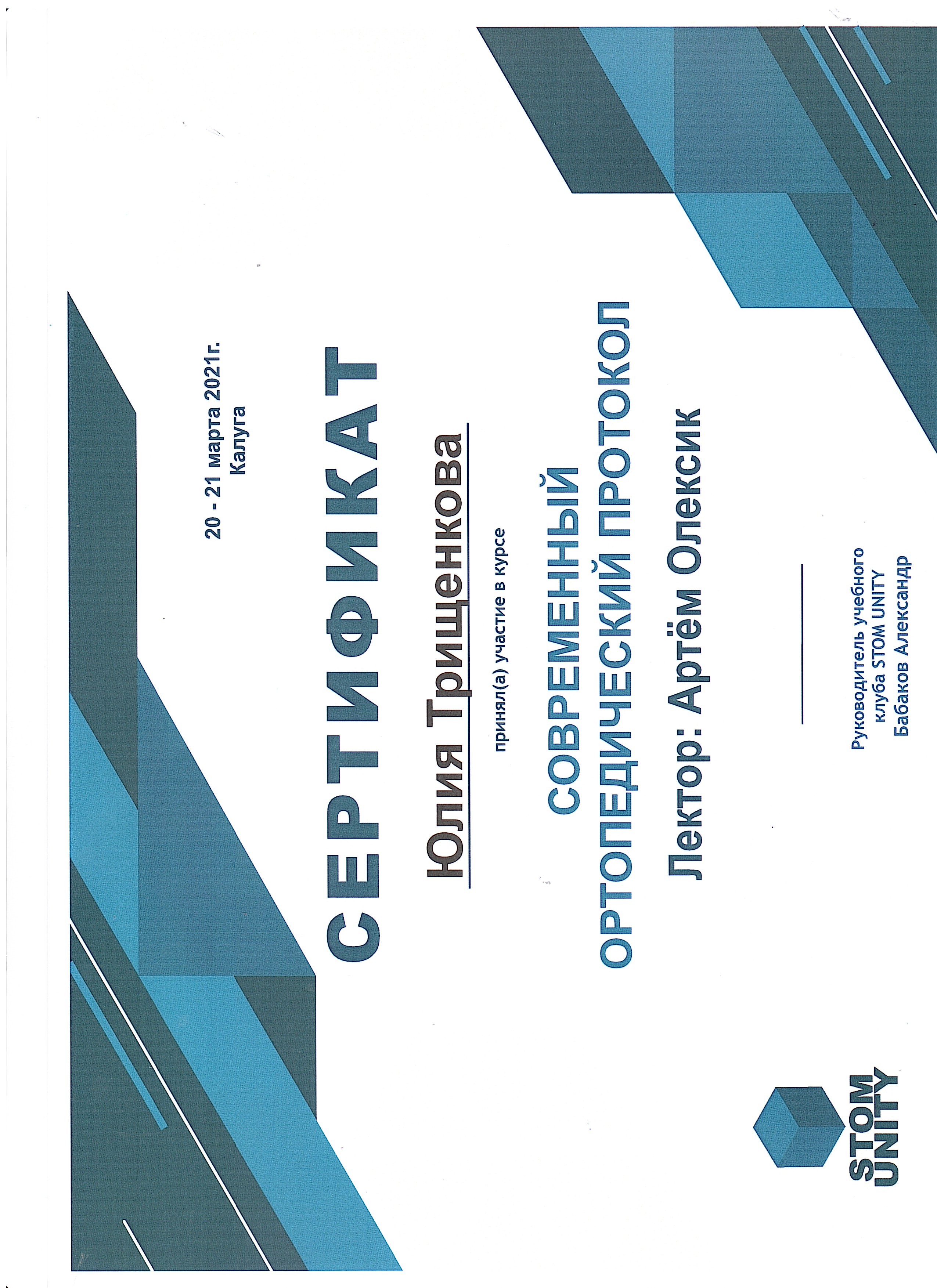 • Составление и реализация индивидуальных комплексных планов лечения по специальности « стоматология ортопедическая»